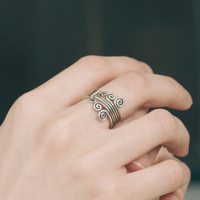 Oval Spiral Silver Ring – Vintage Swirl Design
