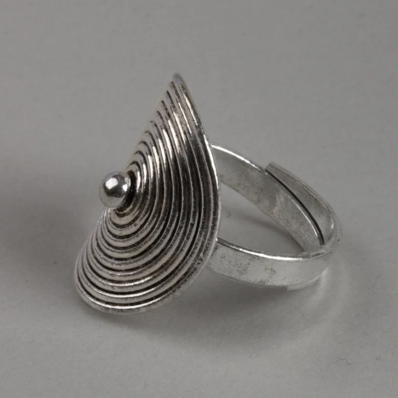 Hmong Tribal Silver Spiral Ring – Ethnic Swirl Design