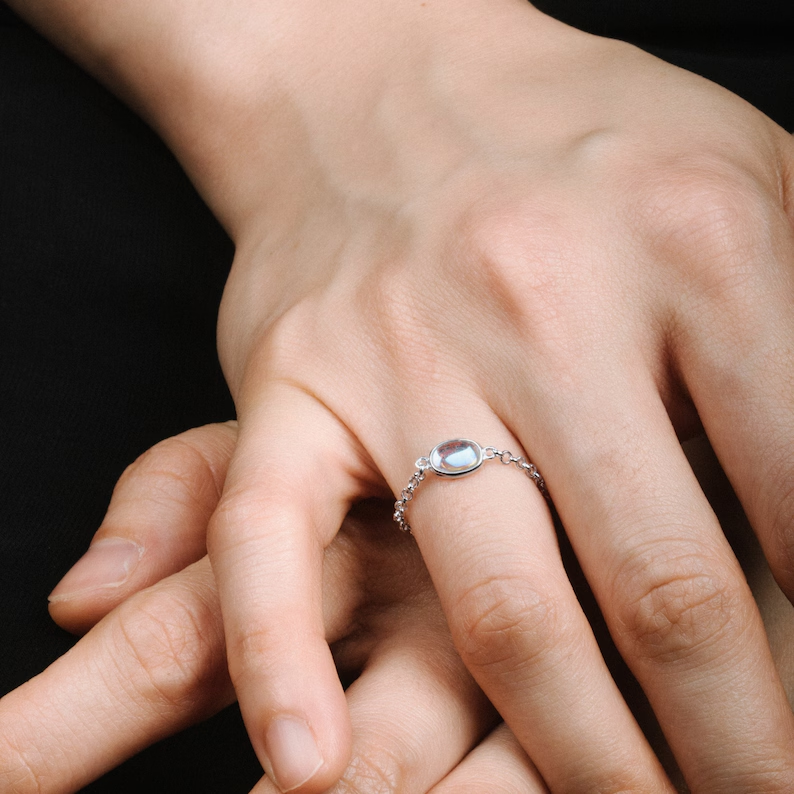 Adjustable Moonstone Chain Ring – Ethereal Silver Jewelry