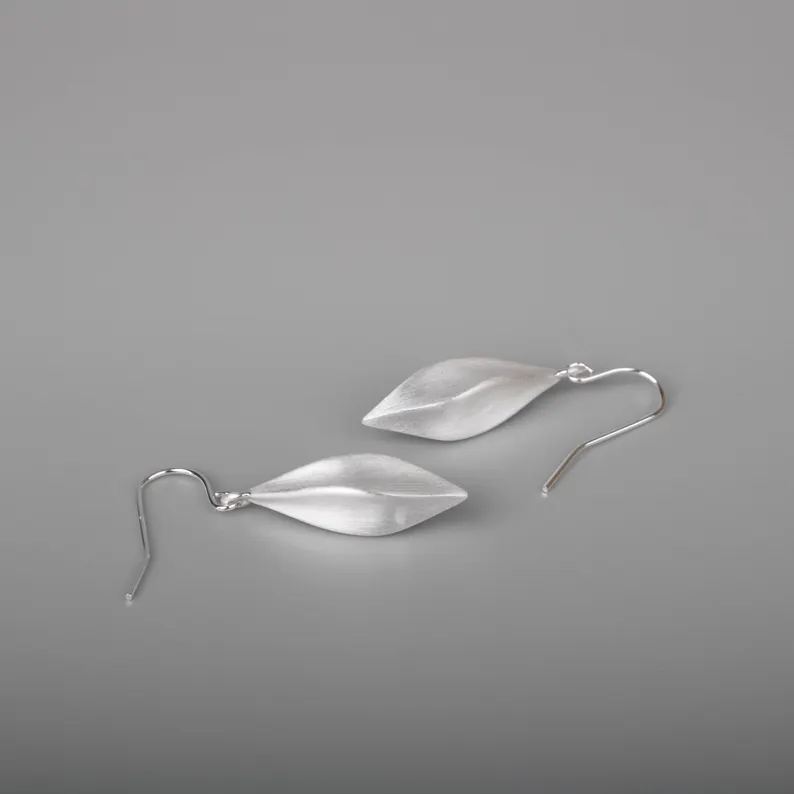 Abstract Silver Dangle Earrings – Teardrop & Nut Design