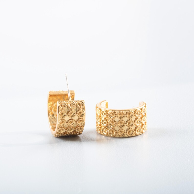 Be the first to review “Gold Daisy Hoop Earrings – Wide Floral Design”
