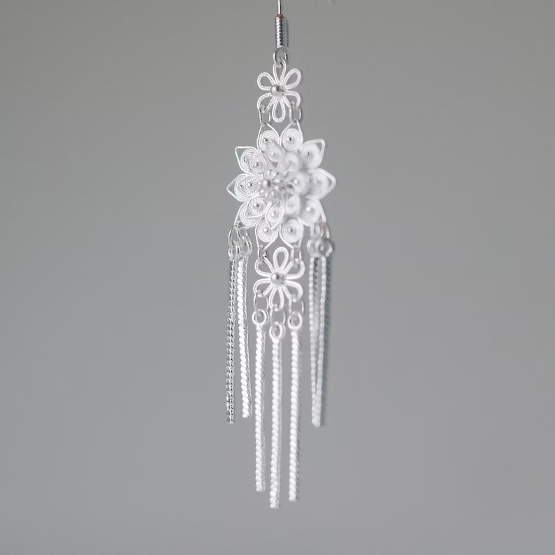 Showcase cultural artistry with the Hmong Layered Earrings, inspired by the traditional craftsmanship of the Hmong people. Featuring intricately layered designs that create depth and movement, these earrings are a striking accessory for anyone who appreciates ethnic and handmade jewelry.