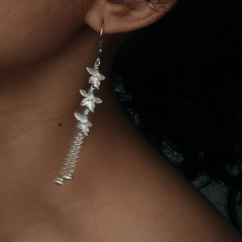 Lily Flower Long Dangle Earrings – Elegant Floral Jewelry