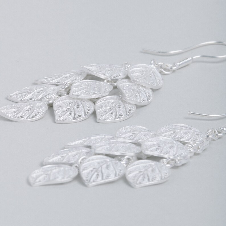 Beautiful leaf design with elegant silver drops. Lightweight and perfect for both casual and formal looks.